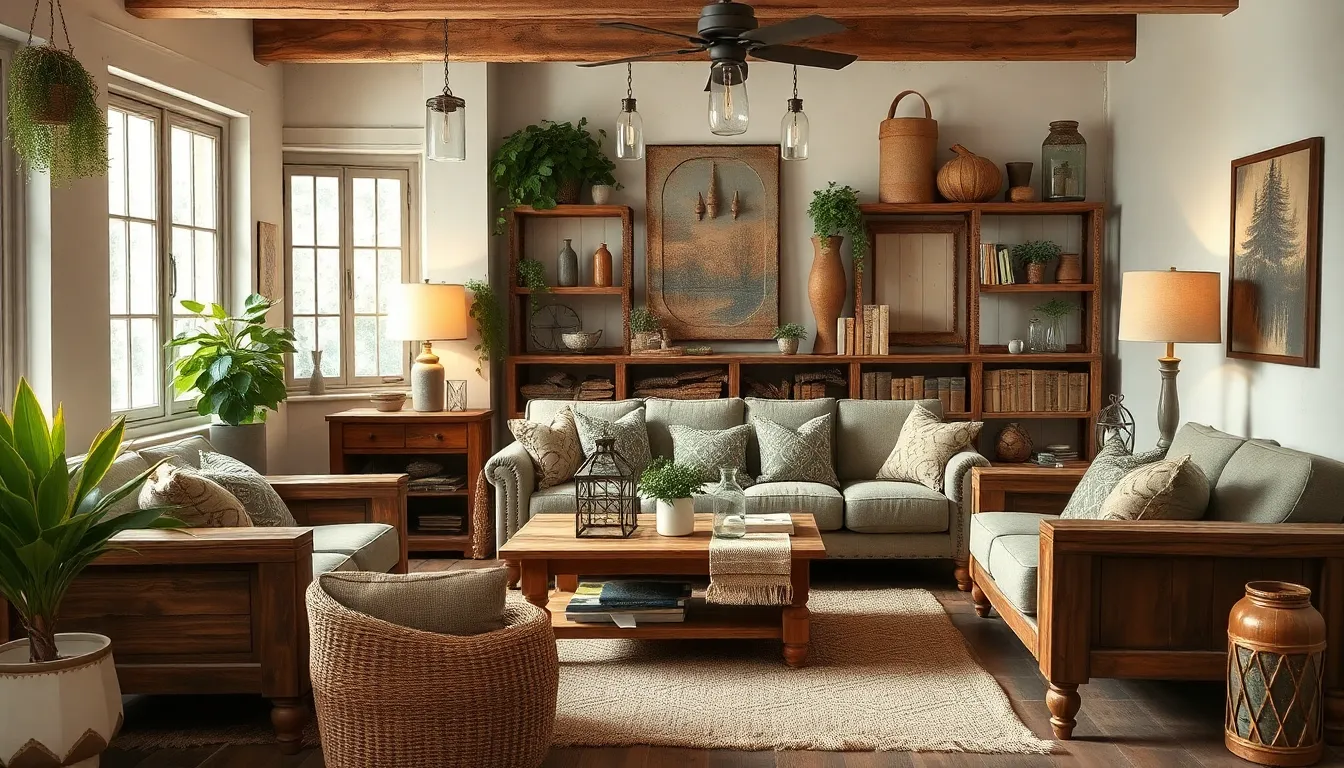 Rustic decor embodies a warmth that often draws inspiration from nature. Wood accents, like reclaimed furniture and handcrafted shelves, create a cozy atmosphere. Textured materials, such as burlap and linen, complement this style well. Earthy color palettes feature neutral tones and deep greens, enhancing organic vibes. Vintage pieces, including mason jars and farmhouse signs, contribute to the rustic charm. Accessories like woven baskets and cozy throws serve as functional decor while adding character. Combining these elements establishes a welcoming environment that’s both stylish and functional.